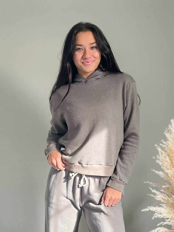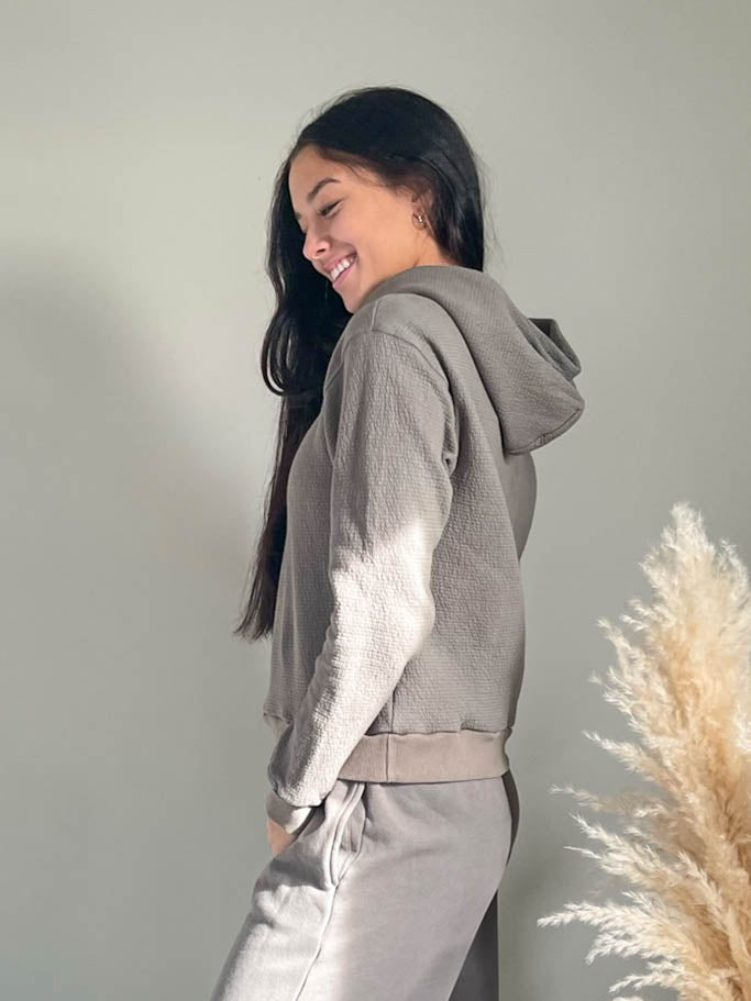 The Page Quilted Hoodie, is the perfect hoodie. The Cotton military thermal knit-inspired by a 70’s thermal treasure found at the military surplus store. They're made from Perfect White Tee's signature soft cotton. You will live in this.
