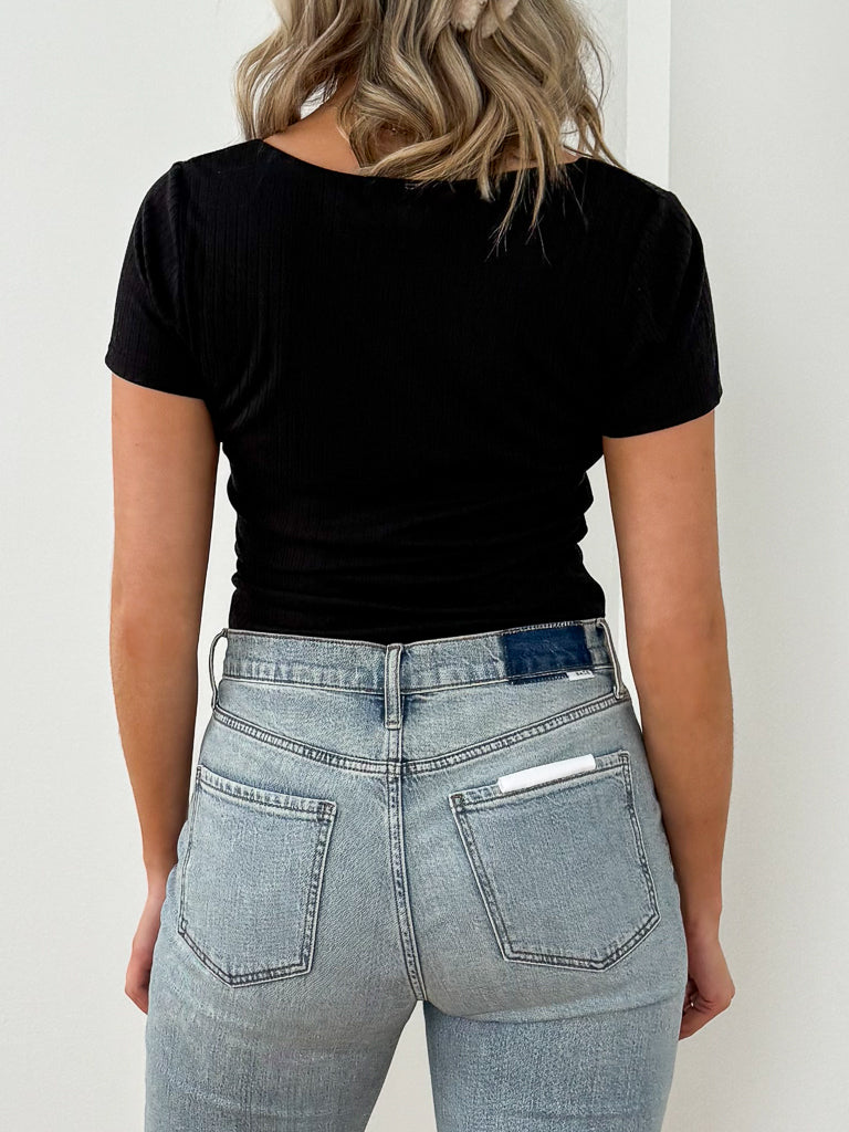 The Saltwater Luxe Tessa Short Sleeve Bodysuit in black is a go-to classic that can be worn with anything.