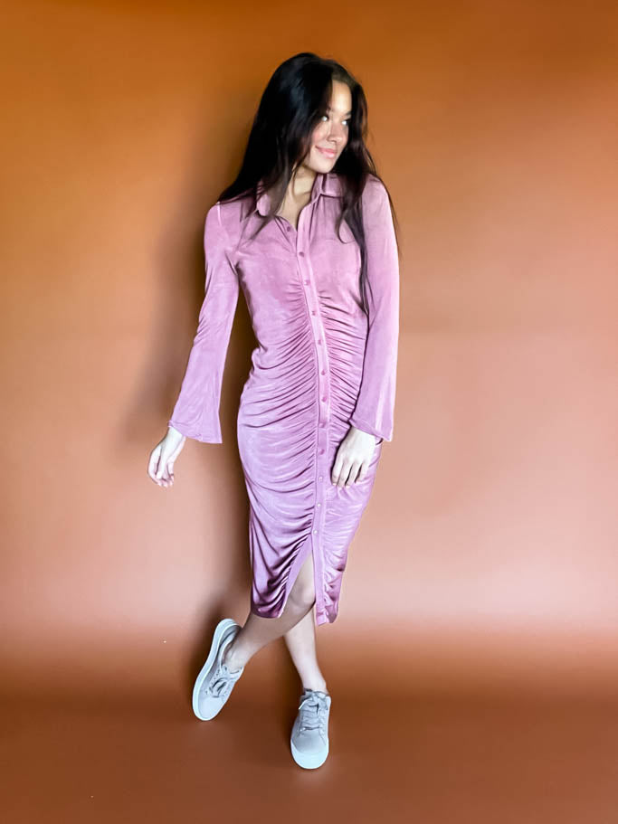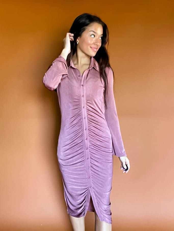 Laramie Ruched Front Dress - Mauve