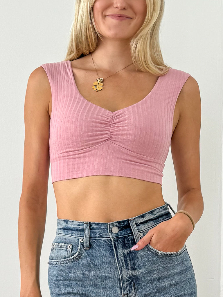 Z Supply's Hazey Rib Tank Bra is made from a comfy rib fabric, with a design twist for the season. More of a cami feel, this cute braletti has shirring at the center and elastine for a snug fit.