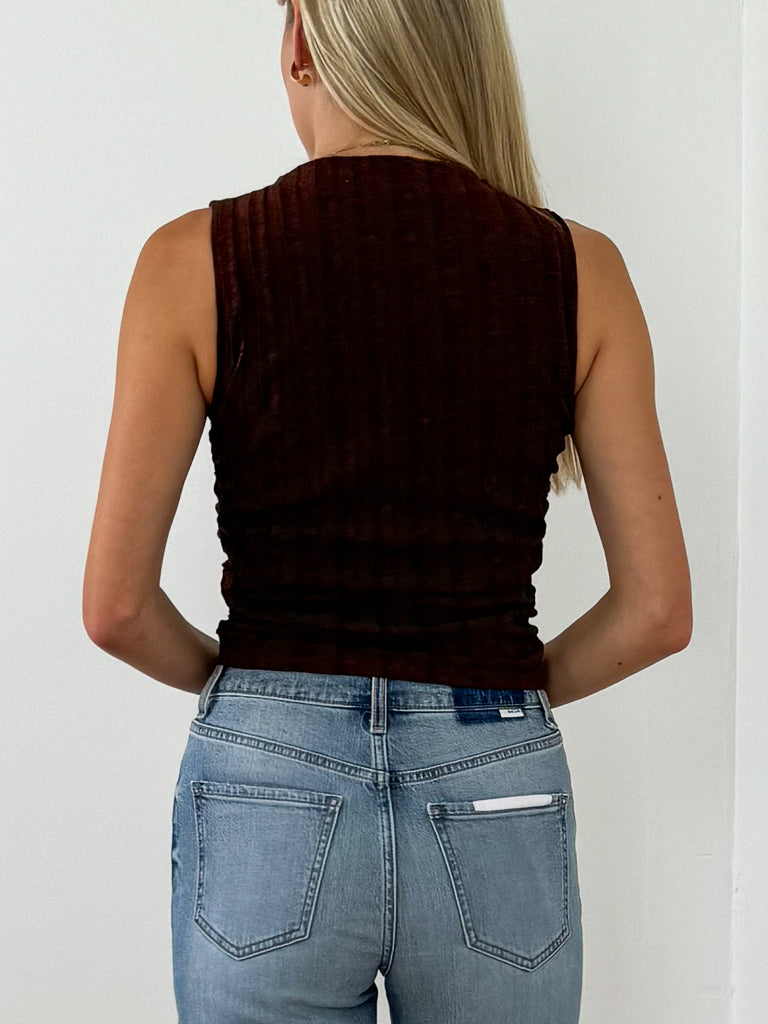 Georgia Funnel Neck Sweater Rib Tank- Russet Brown