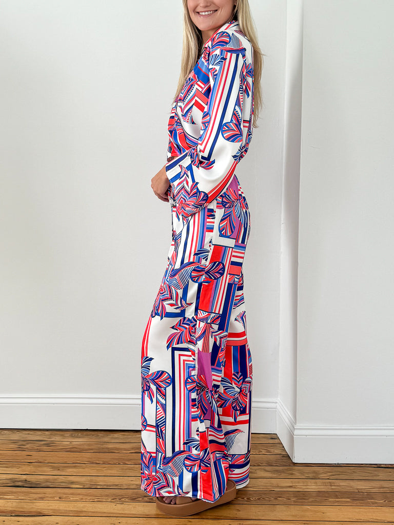 Getaway Wide Leg Pants- Cream/Blue/Coral