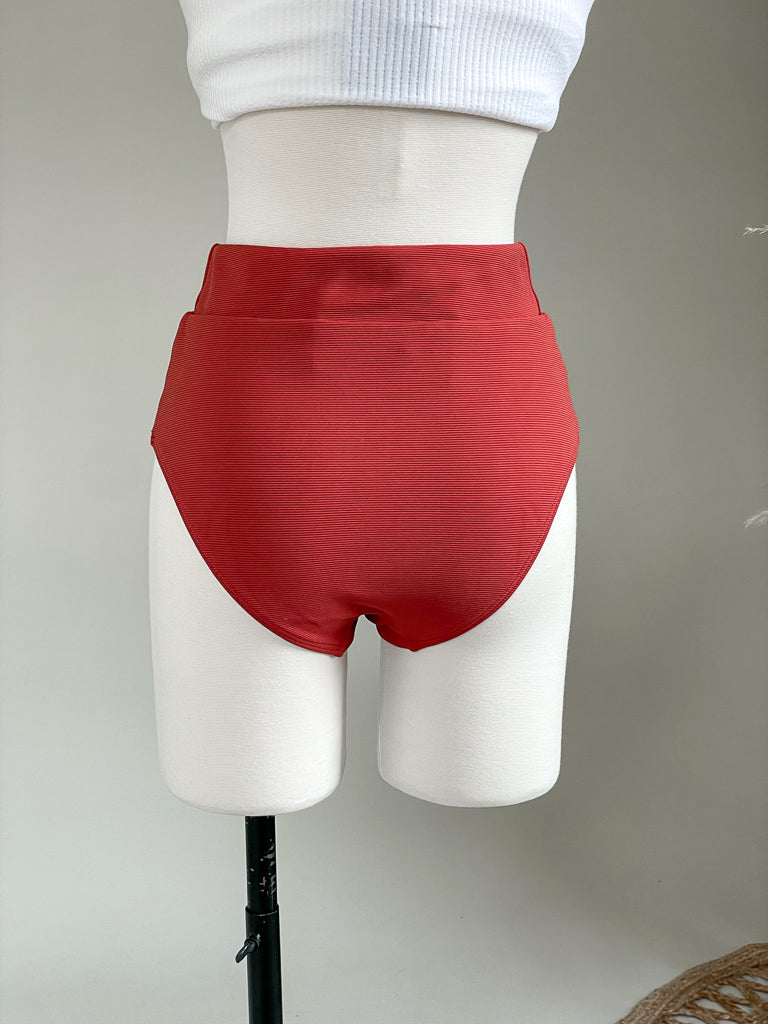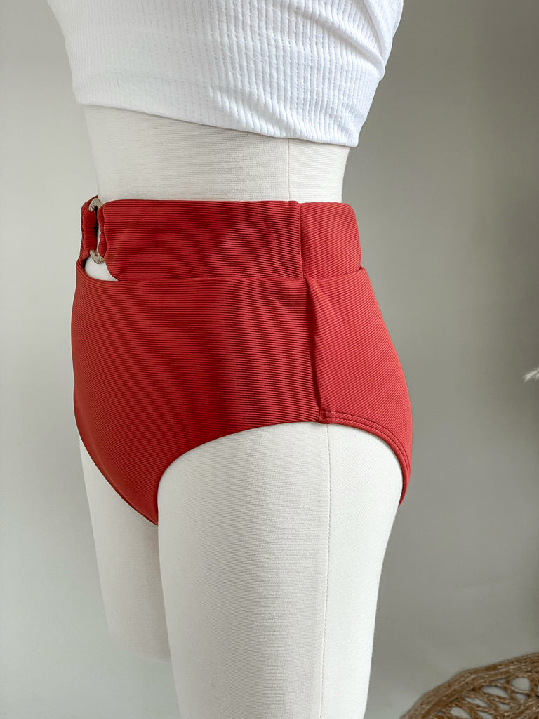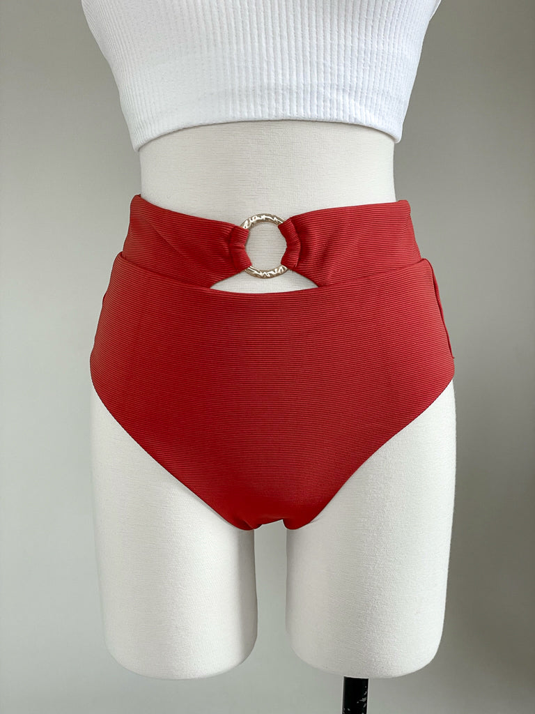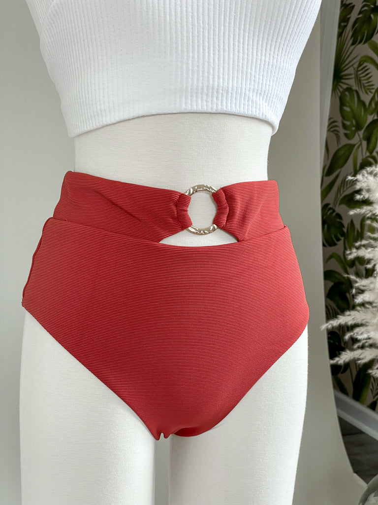 This signature silhouettes of these suits are crafted using high-quality fabrications with unrivalled attention to detail, producing products you can trust - wherever you’re heading next. The Isla Rib High Waist Trim Pant has a high legline to elongate the leg, cheeky coverage and and high rise that makes this very comfortable to wear. *Please note, that while this bottom matches the Isla Rib Pull On Trim Top, the "rings" are made from different materials.*