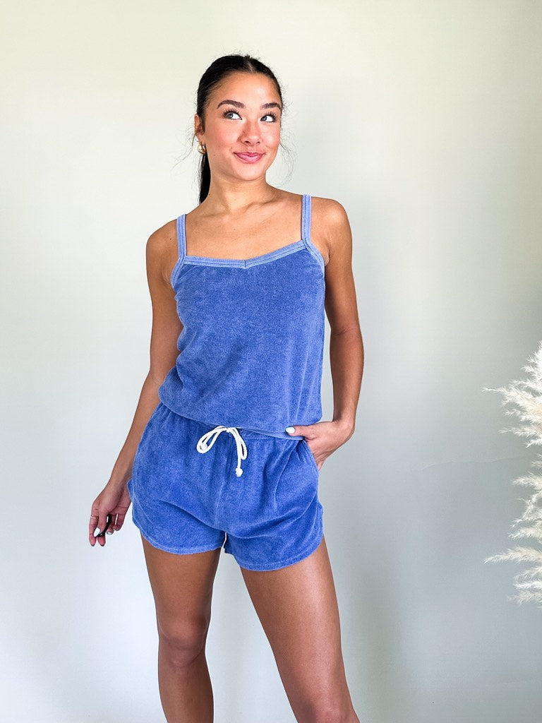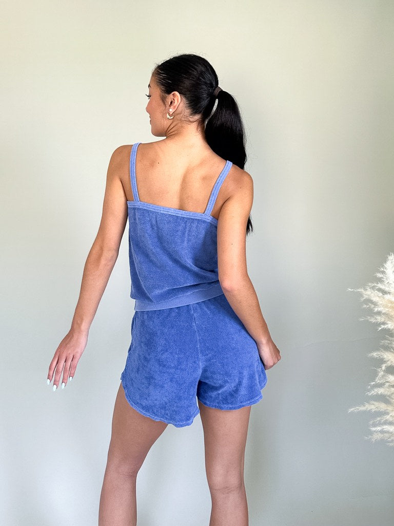 The easy Marley Loop Terry Tank is the perfect lightweight option for this summer. It features spaghetti straps, a ribbed hem and the softest terry fabric. This tank pairs perfectly with the Farrah Shorts in Sailor Blue for a cute beach set this summer.