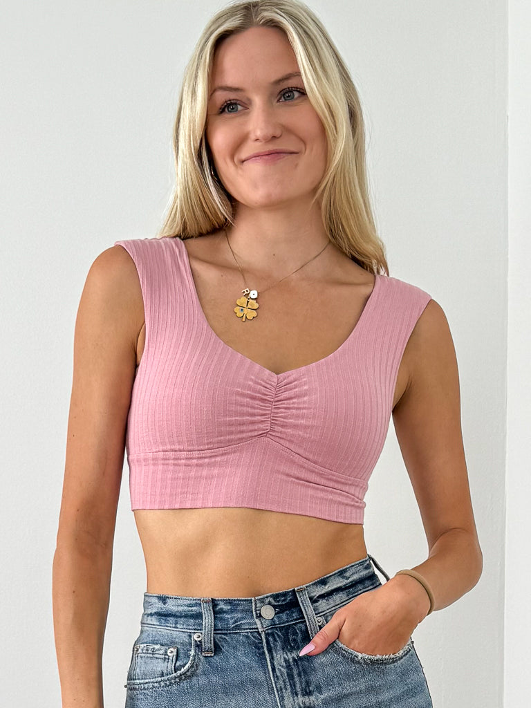 Z Supply's Hazey Rib Tank Bra is made from a comfy rib fabric, with a design twist for the season. More of a cami feel, this cute braletti has shirring at the center and elastine for a snug fit.