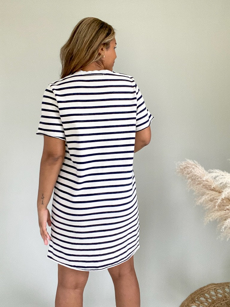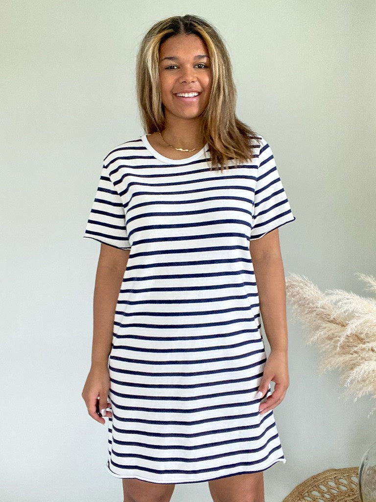 Rhett Stripe Short Sleeve T-Shirt Dress - Navy Stripe