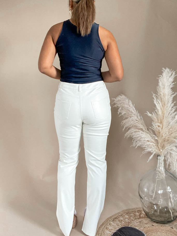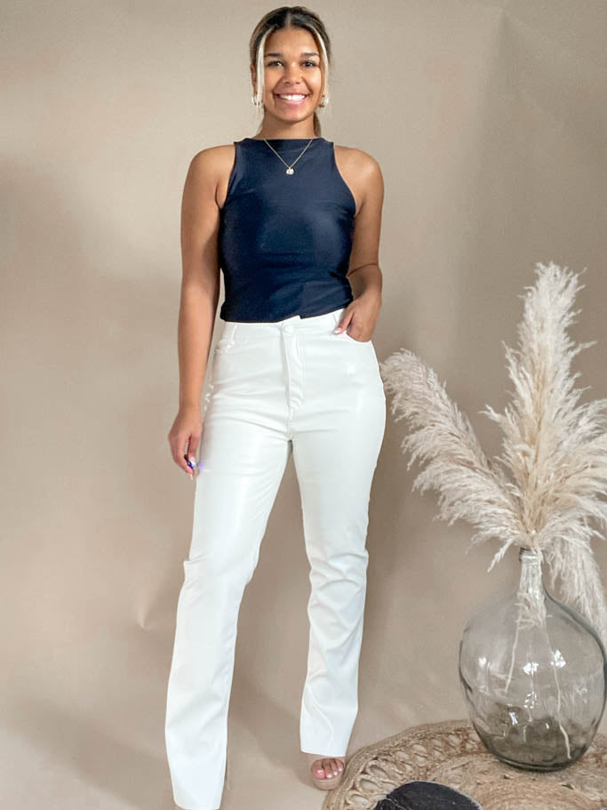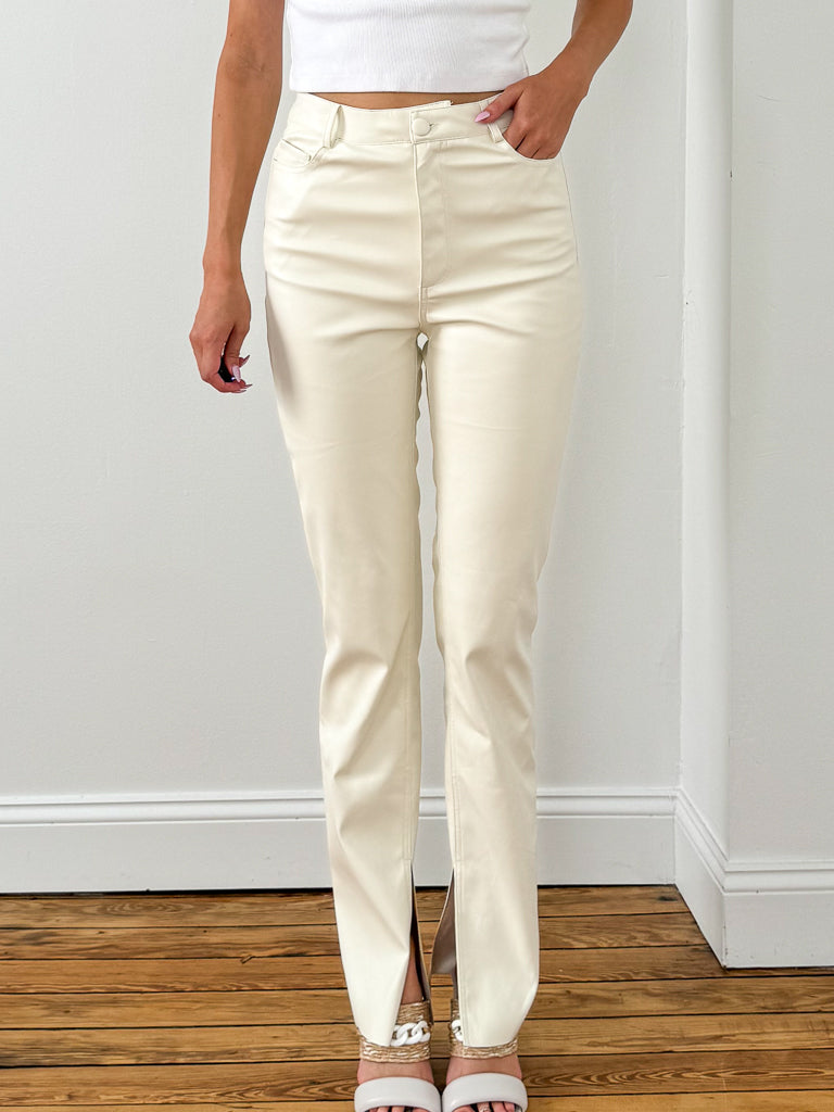The Zeida Pant is a high rise, faux leather that's buttery soft with a slit detail. These pants will pair great with spring sweaters or a fun top for a girls night out!
